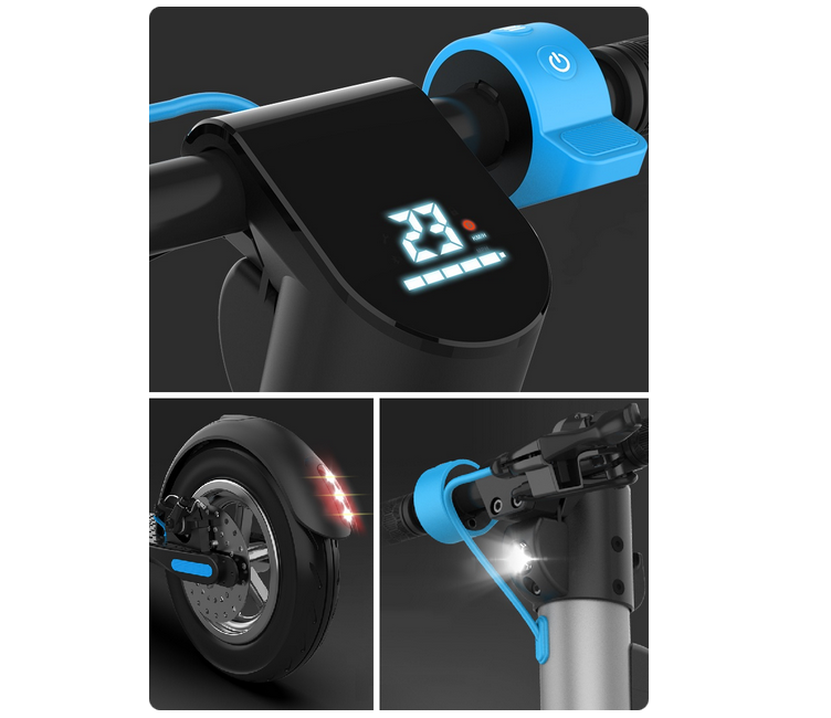 Jasno čitljiv LCD zaslon prikazuje status napunjenosti baterije, trenutnu brzinu i način vožnje, dok se zvono može koristiti za upozorenje drugim sudionicima u prometu da se približavate. Ugrađena prednja i stražnja LED svjetla također poboljšavaju sigurnost vožnje i povećavaju vaše vidno polje.