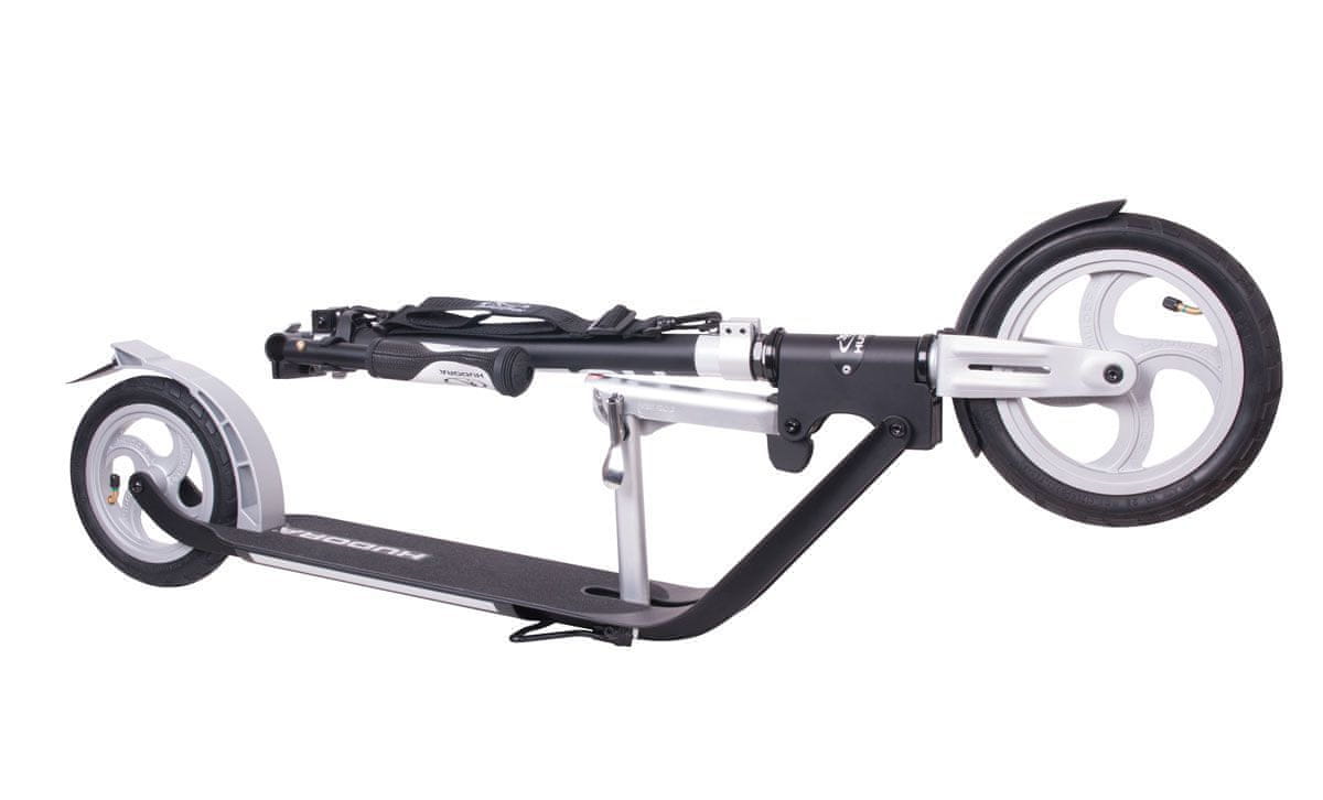 Romobil Hudora BigWheel Air 230, sa svoje dvije velike gume na napuhavanje, pogodan je za gotovo sve terene. Gume na napuhavanje također su otporne na udarce i ugodne za vožnju. Veliki kotači kombiniraju sportsku aktivnost i udobnost vožnje, a gume su postavljene na lagane aluminijske naplatke koji savršeno upijaju udarce. Prednja i stražnja strana imaju bokobrane koji štite odjeću od prljavštine s kotača. Romobil je stoga prikladan i za svakodnevnu upotrebu.