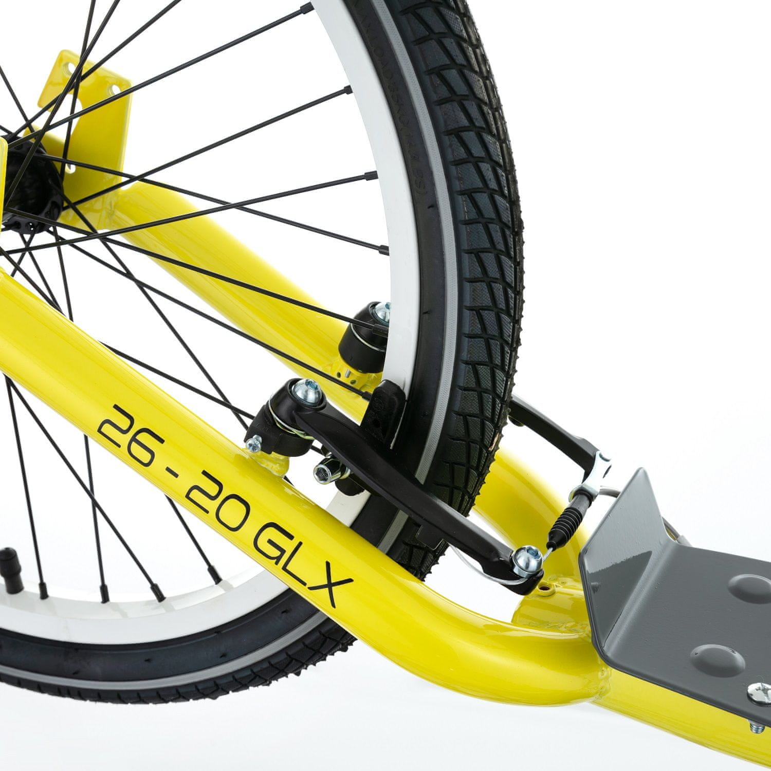 Skuter MASTER 26–20 GLX s disk kočnicom ima veliki i vrlo stabilan okvir. Zahvaljujući velikim kotačima, skuter je dizajniran za brzu vožnju po ravnoj površini ili čak za vožnju po blagom terenu. MASTER skuteri zadovoljavaju najviše sigurnosne standarde. Skuteri nisu samo prikladno prijevozno sredstvo za sve dobne skupine, već nude i mogućnost opuštanja uz vožnju omiljenom biciklističkom stazom. Svaka vožnja puna je zdravog kretanja i malo adrenalina. Za razliku od bicikla, skuter možete lakše spremiti, primjerice tijekom svakodnevnog putovanja u školu ili na posao. Nađite vremena za vožnju i nemojte ljenčariti kod kuće ispred TV-a, vožnja romobilom nije teška i donijet će vam radost kretanja. Svaki pravi skuter dolazi s kvalitetnom dodatnom opremom, na primjer, možete birati između široke ponude zvona, držača za boce i štitnika. Tehnički podaci: