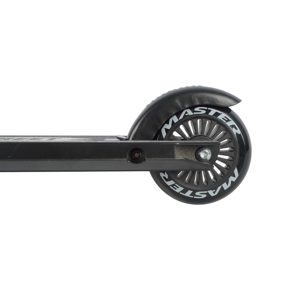 Master STREET je idealan romobil za svu djecu koja se žele dobro zabaviti. Zahvaljujući svojoj konstrukciji pogodan je za vožnju i izvođenje trikova na ulici ili u skate parku. Okvir je izrađen od aluminija, tako da nije samo čvrst, već i lagan. Istodobno, izdržljiva konstrukcija može izdržati do 100 kg. Skuter ima posebne ručke od kromiranog čelika u obliku slova Y od 360°. Također ima užljebljene TRP ručke za čvršće držanje od običnih gumenih rukohvata. Možete računati na to da vam ruka neće skliznuti čak ni tijekom teške vožnje. Iz sigurnosnih razloga preporučamo kupnju štitnika i kacige za skuter. Tehnički podaci: