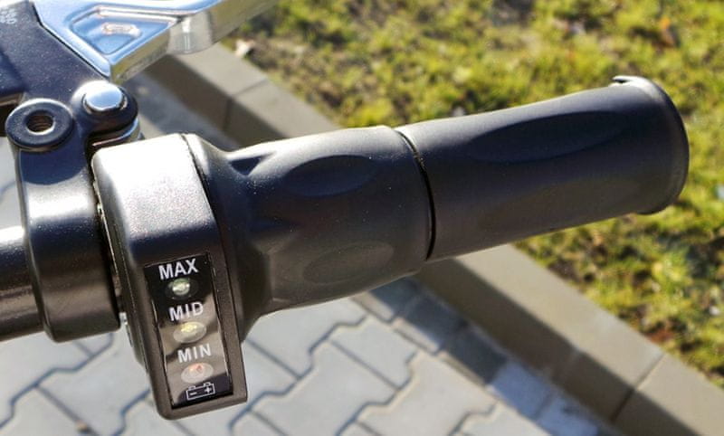Viron električni romobil se može pohvaliti snažnim 800 W motorom koji se sastoji od tri 12 V baterije s kapacitetom od 12 Ah. S punom baterijom ćete moći voziti do 30 km, a udaljenost ovisi o vrsti terena i brzini vožnje (ECO način rada – do 5 km/h = udaljenost 30 km; pri brzini od 32 km/h oko 16 km).