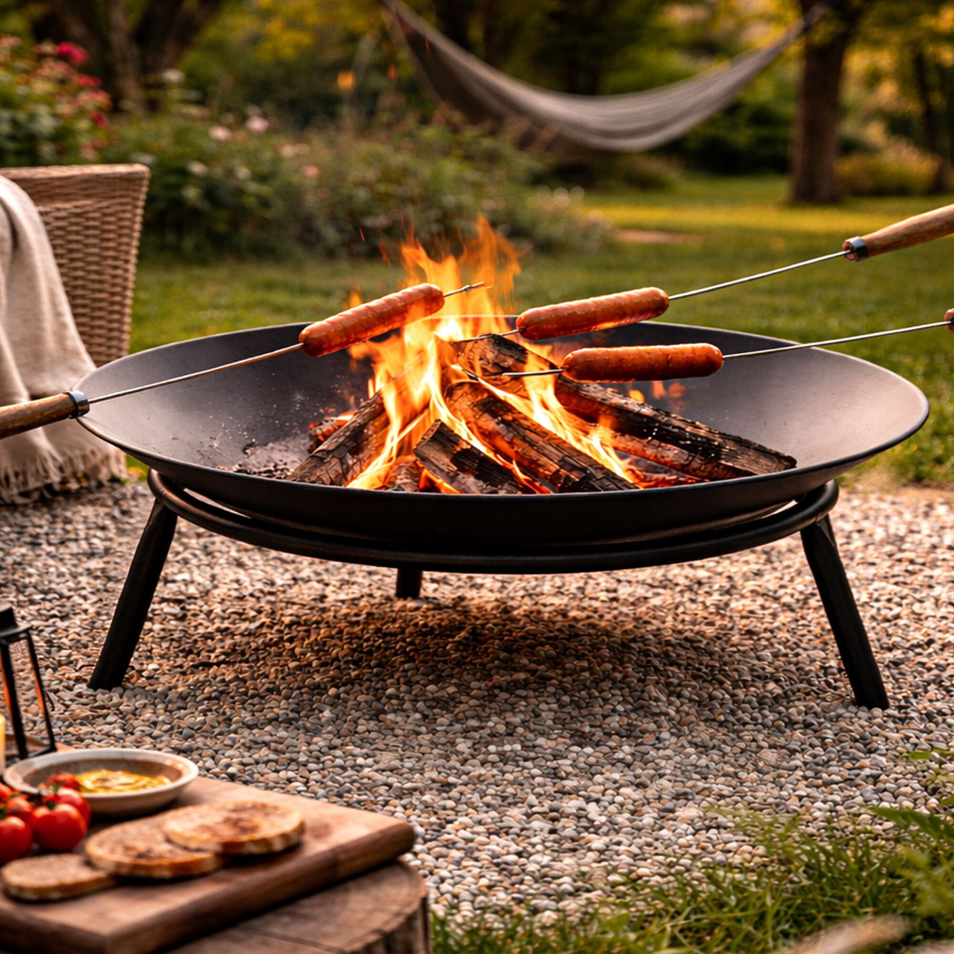Vatra je neodvojivo povezana s trenucima opuštanja i druženja s prijateljima. Ognjište se može koristiti ne samo kao izvor svjetla i topline, već i za tradicionalno pečenje kobasica ili u kombinaciji s tronošcem za pripremu hrane u kotliću.
