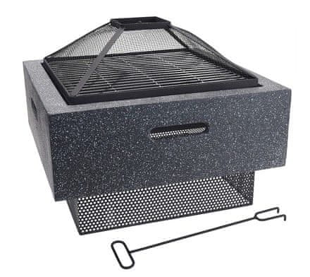 - dizajnerski kamin od umjetnog kamena stvorit će prekrasan autentičan ugođaj u vašem vrtu, terasi ili vikendici – sa ili bez upaljene vatre, postat će središnji dio vaše vrtne zabave, večernjeg sjedenja uz vatru ili roštiljanja – možete u potpunosti roštiljati na uklonjivoj kromiranoj rešetki – materijal: čelik / MgO – visokokvalitetni, robusni dizajn od umjetnog kamena otpornog na toplinu osigurava dug vijek trajanja – veliko četvrtasto dno osigurava izvrsnu stabilnost, kamin se nikada ne ljulja niti prevrće – uključuje čelični poklopac s ručkom koja hvata iskre, što kamin čini sigurnim za korištenje na osjetljivim površinama i na travnjaku – višenamjenska upotreba, idealan za vrt, dvorište, terasu ili vikendicu – paljenje vatre uglavnom pomoću drva ili ugljena ili briketa – nimalo teško za pomicanje i rukovanje, težina je adekvatnih 11 kg, plus ima dvije praktične integrirane ručke sa strane – pakiranje također uključuje žarač – DIMENZIJE: – dimenzije rešetke roštilja: 41 × 41 cm – dimenzije središnjeg kamenog dijela: 53 × 53 × 18 cm – visina bez poklopca, za kamenu oblogu: 30 cm – ukupna visina: 41 cm