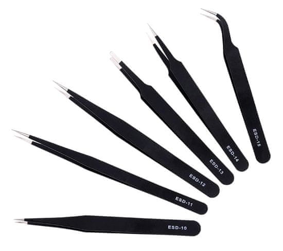 Profesionalni set pinceta za servisiranje i modeliranje. Set uključuje 6 ravnih i dijagonalnih pinceta, potrebnih za bilo koju elektroniku. Alati će biti uspješni u manjim preciznim popravcima (npr. sustavi potkopavanja). Izrađen od antistatičkog materijala (ESD) koji sprječava elektrostatičko pražnjenje.