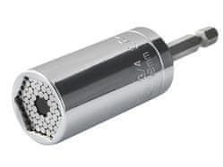 Kvalitetan univerzalni nastavak za vijke i matice u dimenzijama od 7 mm do 19 mm, bilo kojeg oblika (šesterokutni, četvrtasti), za vijčane kuke, kuke i bilo što drugo u toj dimenziji. Univerzalna nasadna glava (oraščić) izrađena je od izdržljivog krom-vanadij čelika (CR-V). Duljina glave iznosi 53 mm (bez adaptera za bitove).