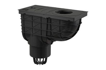 Krovni odvod DN 110 materijal: polipropilen s UV stabilizacijom sadrži brtvene prstenove za spajanje oluka različitih promjera (80, 90, 110, 125 mm), poklopac za oluke (može se zamijeniti rešetkom.