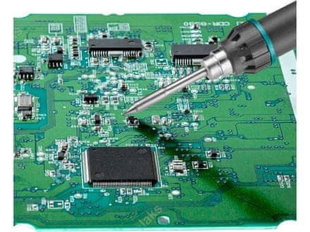 Profesionalna lemilica s mikroprocesorom i zaslonom dizajnirana je za meko lemljenje koje zahtijeva preciznost i kontrolu temperature vrha, posebno za elektroniku i nakit. Korištenjem odgovarajućeg vrha dlijeta, rub se može koristiti za malo rezanje ili spajanje plastike, a također i za pečenje simbola na drvu. Rub plijena se izravno zagrijava T9 posipom. Ovo je najmoderniji tip zavojnice, gdje su zavojnica, grijač i termistor spojeni u jednu jedinicu. Budući da postoji minimalan gubitak gornje linije i udaljenosti između ovih dijelova, ovi kotačići su učinkovitiji i mogu se dobro zavarivati ??od 330°C. Za prethodni sloj posip, gornja granica je oko 350°C. Temperaturni senzor u kombinaciji s mikroprocesorom omogućuje kontrolu povratne petlje i lemilo vrlo brzo reagira na promjene temperature vrha. Korišteni LCD zaslon ima savršenu vidljivost iz svih kutova i pod bilo kojim uvjetima osvjetljenja. Prikazuje i ciljanu temperaturu i trenutnu temperaturu odljeva te indikator grijanja. Možete birati temperaturne jedinice između ?C i ?F. Pomoću gumba možete postaviti temperaturu u rasponu od 80–450 °C. Lemilica je opremljena s nekoliko funkcija: postavljanje izračunate temperature, kalibracija, spavanje i zaključavanje. Pomoću funkcije numeričkog podešavanja temperature možete postaviti temperaturu koja se pojavljuje nakon uključivanja grijača. Kalibracijom temperature možete kompenzirati gubitke temperature koji nastaju pri korištenju većih legla u rasponu od ±50 °C. Funkcija spavanja omogućuje lemilici da „spava“ nakon što je temperatura postavljena na 80 °C. Nakon 30 minuta „spavanja“, limilica se isključuje. Pomoću brave postavljate lozinku koju trebate unijeti kako biste promijenili postavke Lemilice. Lemilica također ima ESD zaštitu od pražnjenja statičkog elektriciteta. Plastični prijelaz između metalnih i plastičnih dijelova izrađen je od posebne plastike s visokom otpornošću na toplinu, a ručka je obložena silikonom za udoban hvat tijekom savjetovanja. Paket ne uključuje USB napajanje, ali možete koristiti bilo koje napajanje koje ima minimalne tehničke specifikacije navedene u parametrima. Lemilica se može koristiti s 5V ili 9V u hitnim slučajevima, ali savjetovanje je vrlo sporo. Preporučujemo napajanja koja daju 12V/1,7A i više. Budući da lemilo koristi standardni USB-C priključak, mogu se koristiti i QC/PD power bankovi ili USB punjači za automobil, što omogućuje lemljenje bilo gdje. Paket uključuje manji stalak sa spužvom za pohranu ruba i USB-A — USB-C kabel od 1,5 m s maks. Napon 12 V.