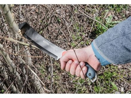 GLAVNE PREDNOSTI Oštrica od nehrđajućeg čelika s elegantnom crnom završnom obradom Isporučuje se s najlonskom futrolom Ručka u kombinaciji tvrdog polipropilena s mekom TPR gumom TEHNIČKI PARAMETRI Tehnički parametri: 400/135 mm Dodatni parametar: ukupna duljina mačete 400 mm, duljina drške 135 mm.