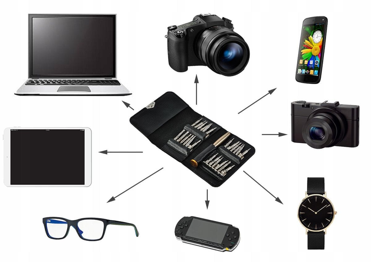 - ŠIROKA PRIMJENA – komplet se može koristiti za popravak telefona, pametnih telefona, prijenosnih računala; također će se baviti nakitom i urarstvom; također će biti koristan u elektrotehničkim radovima ili u optici.