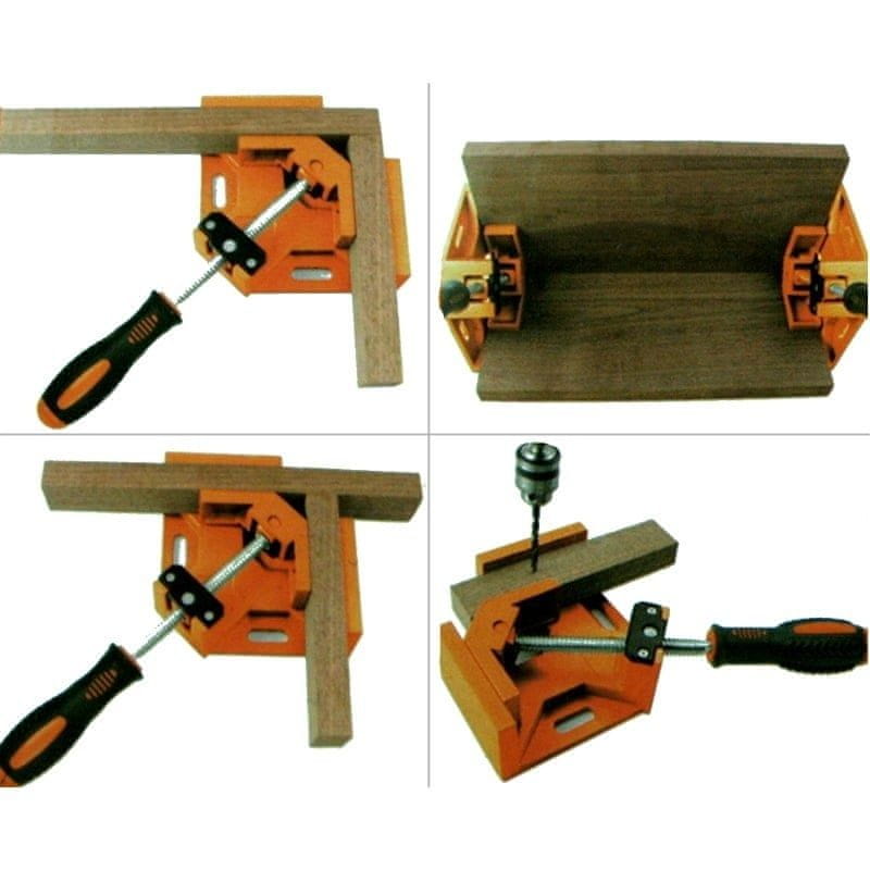 – Visokokvalitetna kutna stezaljka izrađena od aluminijske legure koja omogućuje spajanje dva drvena bloka različite debljine pod kutom od 90 stupnjeva, a idealna je i za zavarivanje, sastavljanje namještaja i sl.