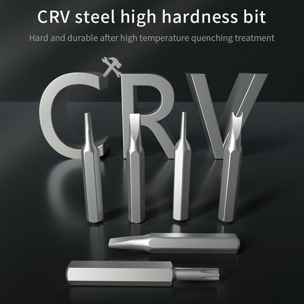 Savršeno za popravak iPhonea, prijenosnih računala, kamera, satova, naočala, dronova, ventilatora, namještaja i mnogih drugih uređaja. Produženi nastavci i produžna poluga omogućuju rad u uskim prostorima i s posebnim vijcima.