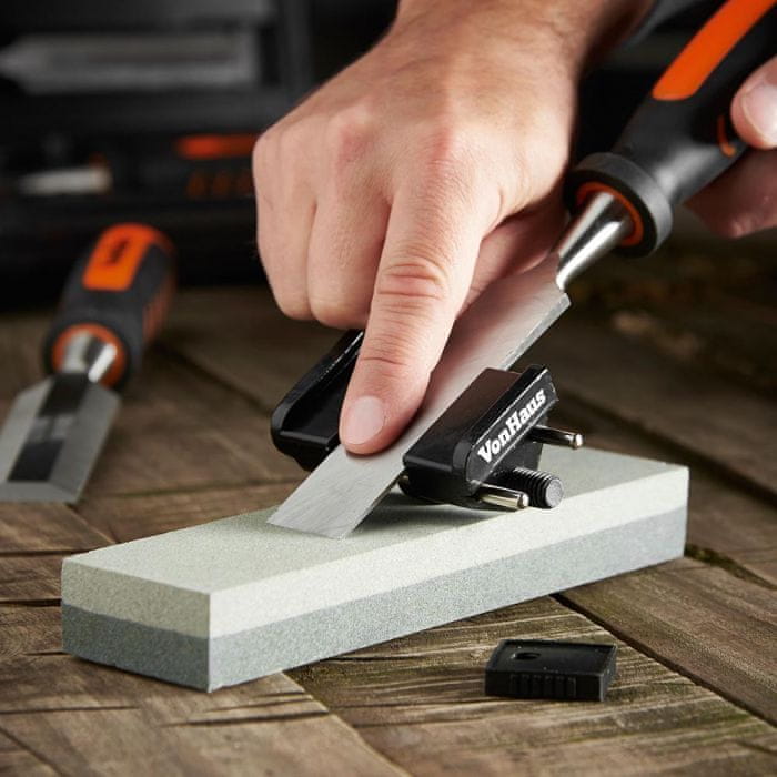 Set sadrži 8 dijelova, uključujući razne nastavke i brusni kamen. Izrađen je od krom-vanadij čelika za dugotrajnu upotrebu.