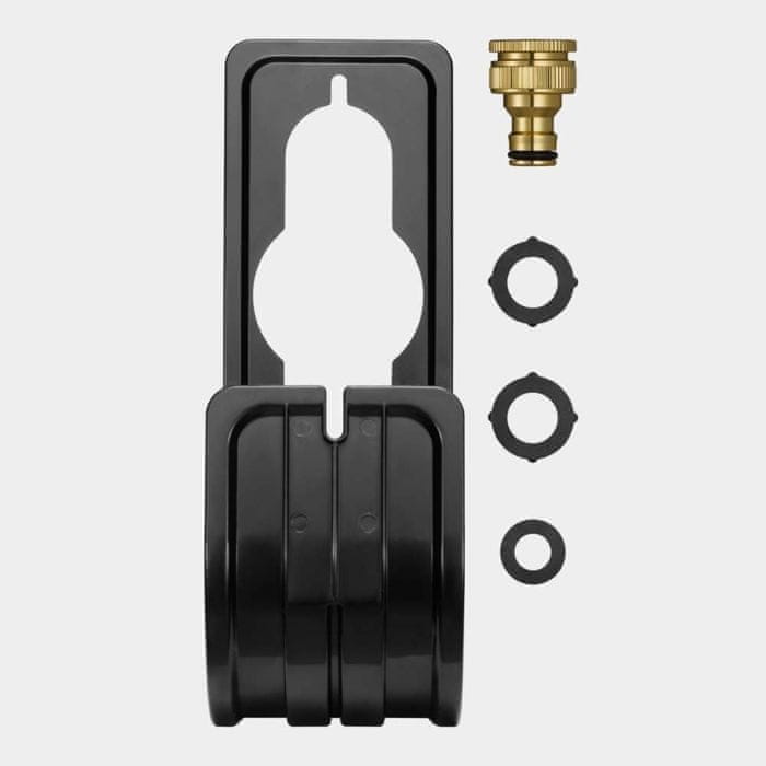 U paketu dobivate sve što vam je potrebno za lako rad na vrtu: 3/4” priključak za slavinu, 1/2” adapter za univerzalnu upotrebu, rezervne brtvila i traku za popravke, torbu za pohranu bez viška materijala, te kuku za pričvršćivanje. Kuku možete jednostavno objesiti na vanjsku slavinu ili je pričvrstiti na zid (vijci za montažu na zid nisu uključeni).