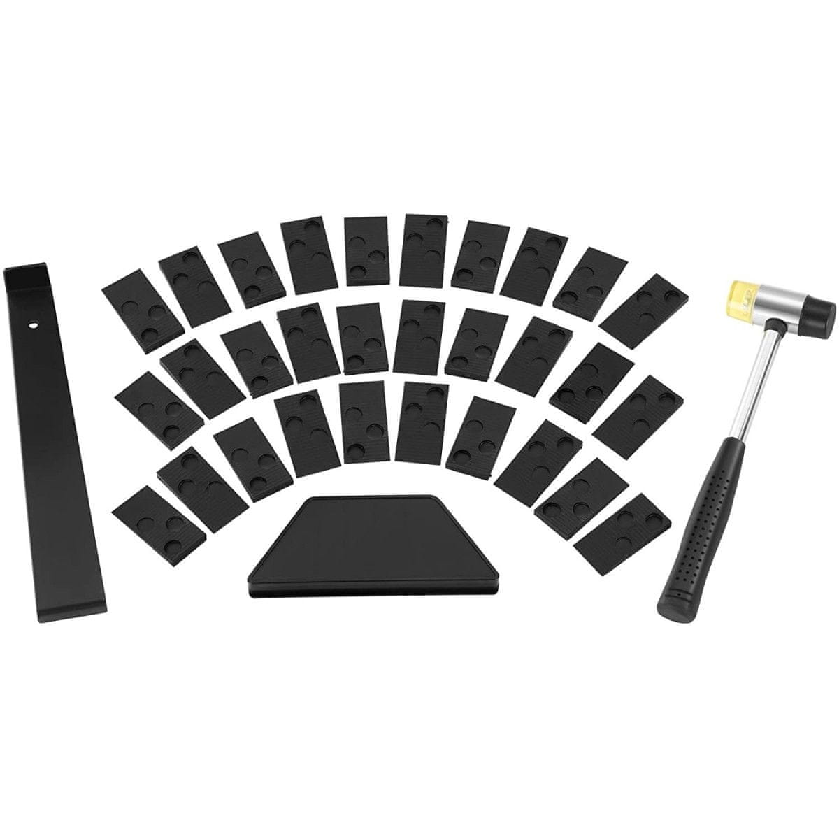 • Uključuje gumenu letvicu za lupkanje, ručku za povlačenje za pomicanje ploča, gumeni čekić s tvrdom stranom i 30 odstojnika.