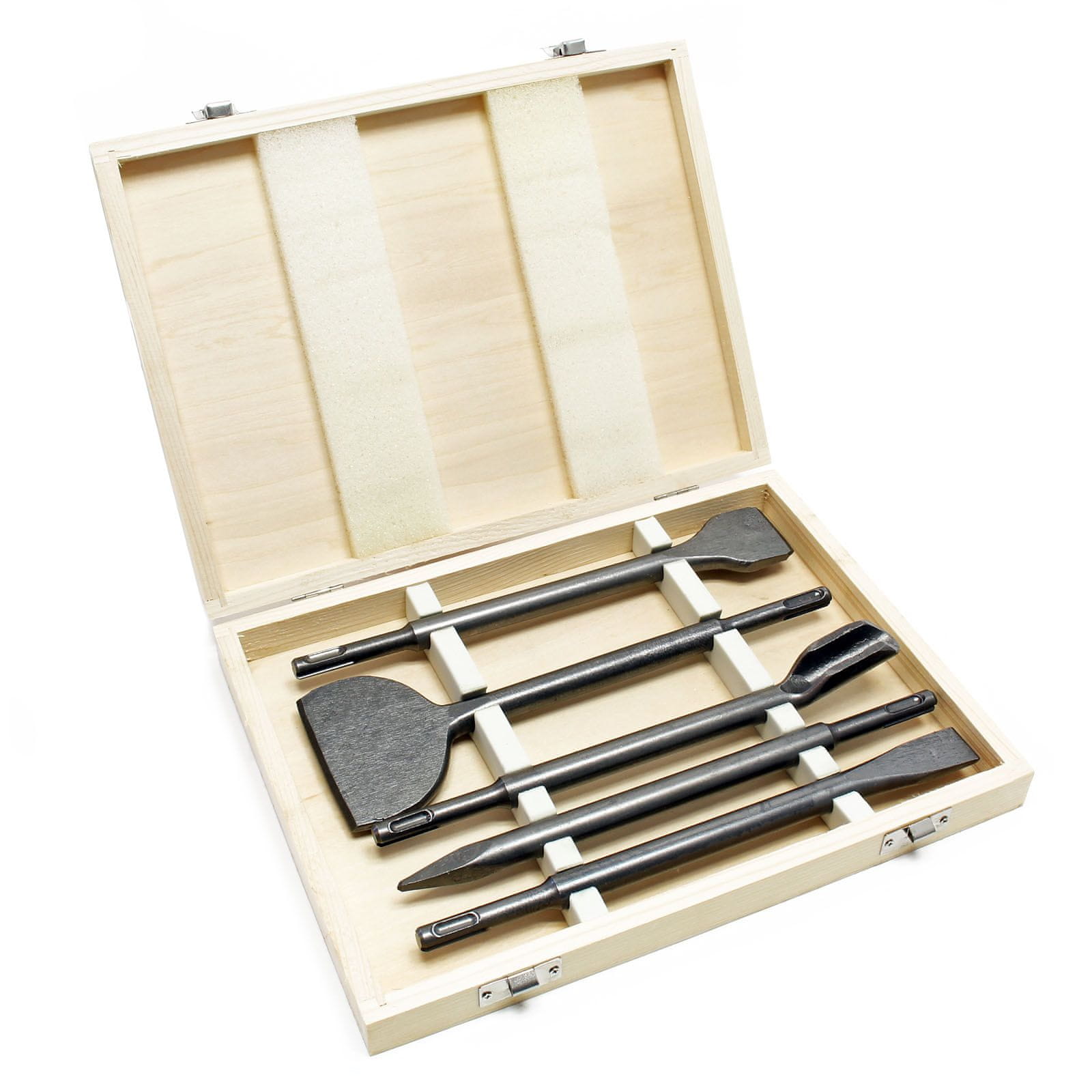 Set se sastoji od dlijeta za pločice, plosnatog dlijeta, širokog dlijeta, šiljastog dlijeta i dlijeta za kanalizaciju. Sva dlijeta prikladna su za bušilice sa SDS-Plus držačem (Ø 10 mm) i posebno su jaka i izdržljiva zahvaljujući robusnoj čeličnoj konstrukciji.
