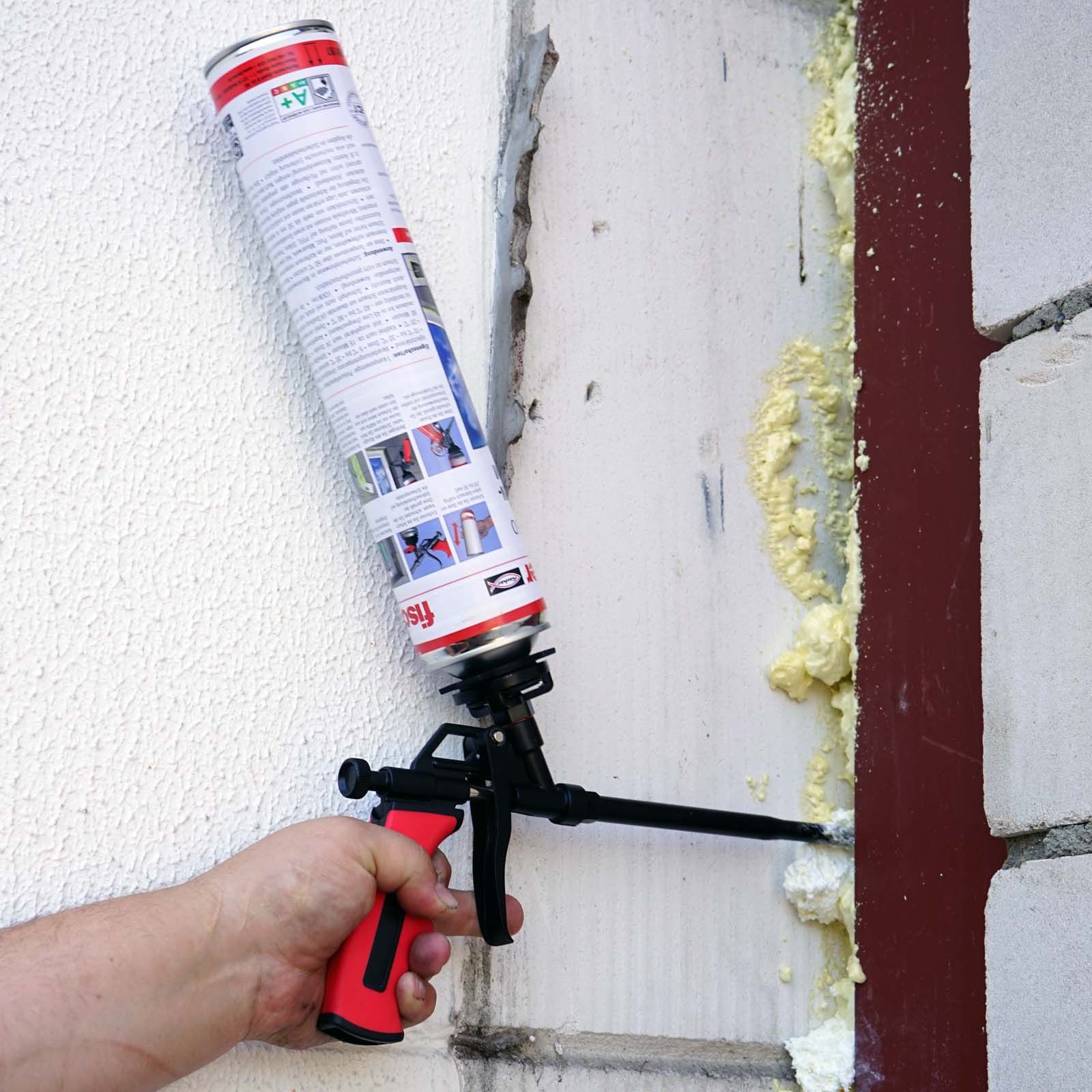 Pištolj za građevinsku pjenu sastoji se od robusnog metalnog kućišta prekrivenog aluminijskom legurom. Cijev pištolja izrađena je od nehrđajućeg čelika, a svi dijelovi presvučeni su PTFE-om, što osigurava dug život i visoku otpornost. S ukupnom duljinom od oko 330 mm i duljinom cijevi od 189 mm, pištolj nudi optimalno rukovanje za različite namjene.