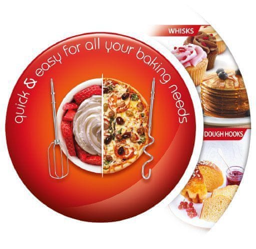 Ručna miješalica Tefal je prikladna za pripremu tijesta ili vrhnja bez ikakvih problema. Miješalica se sama brine o pripremi, ako ga stavite na držač iznad spremnika, možete ga koristiti bez drške.