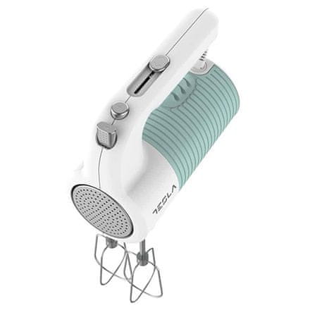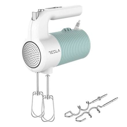 Značajke: – 350 W – 5 brzina – turbo funkcija – gumb za otpuštanje – 2 pjenjače i kuke za tijesto – Tesla kolekcija (sjeckalica FC510BWS, ručni mikser HB510BWS, stolni mikser BL510BWS)