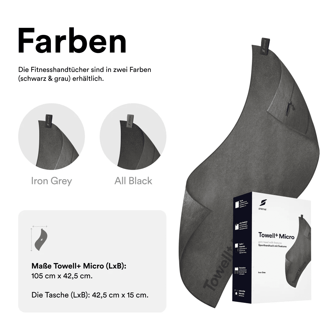 Kvaliteta i higijena su nam prioritet. STRYVE Towell+ Micro nudi optimalne značajke – poput antiklizne zaštite koja sprječava padanje s fitness sprava, džepa s patentnim zatvaračem za vrijedne stvari i jasno označenih strana (za tijelo i sprave) za veću higijenu.