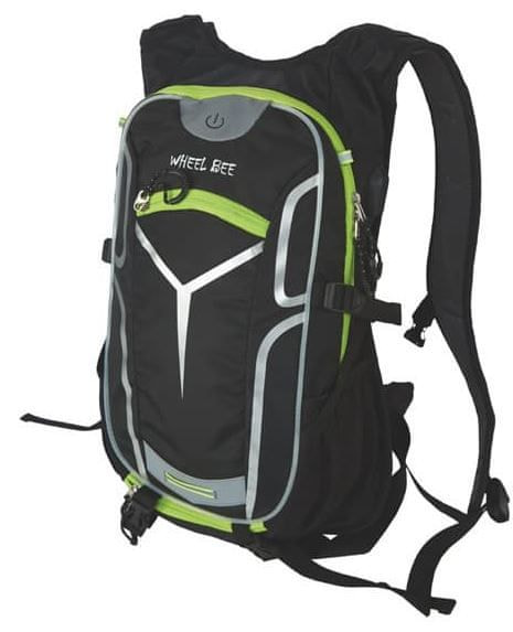 Wheel Bee ruksak LED Stelvio izrazito je praktičan i izdržljiv. Izrađen je od visokokvalitetnog poliestera i ima povećanu vodootpornost. Nudi 18 litara volumena. Ruksak ima podstavljena leđa koja pružaju udobno nošenje i povećavaju cirkulaciju zraka. Za potpunu udobnost brinu se podstavljene podesive naramenice. Ima nekoliko praktičnih džepova za pohranjivanje i veliku traku za pričvršćivanje opreme. Veliki pretinac ima odjeljak za bocu vode/mjeh i izlaz u ramenu za cjevčice bočice.