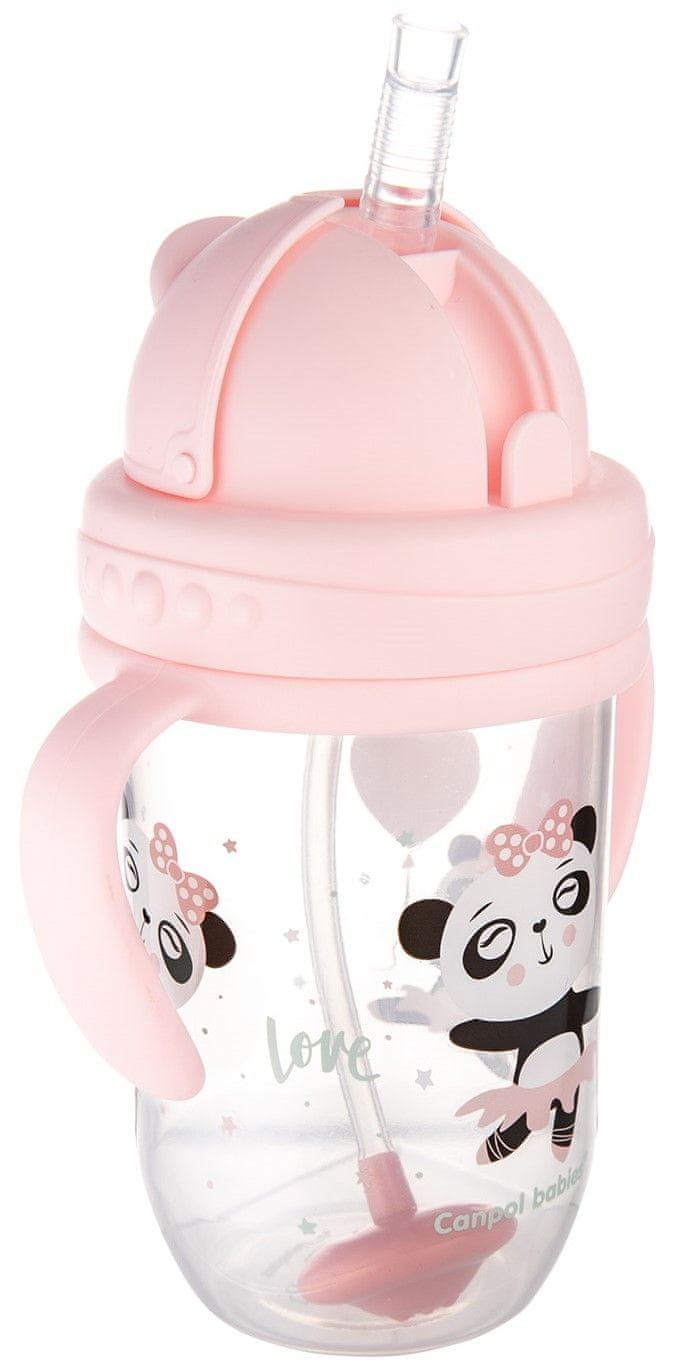 Canpol babies šalica sa slamčicom i utegom EXOTIC ANIMALS, 270 ml, roza