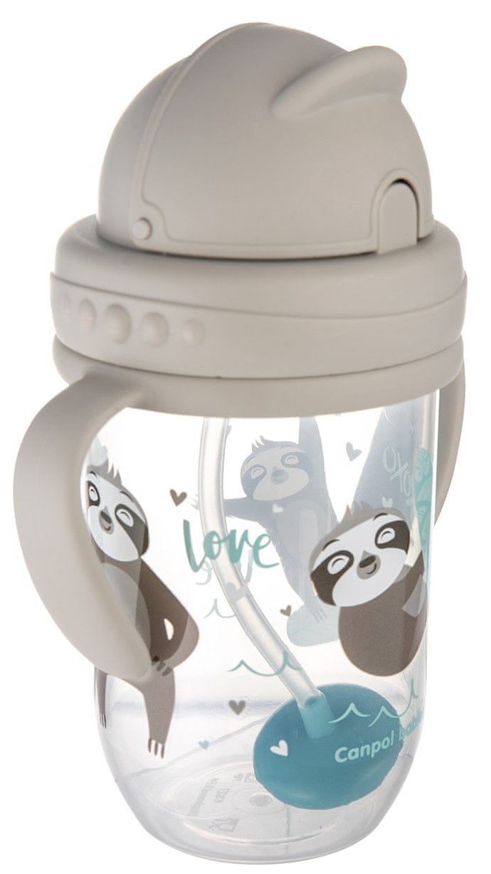Canpol babies šalica sa slamčicom i utegom EXOTIC ANIMALS, 270 ml, siva
