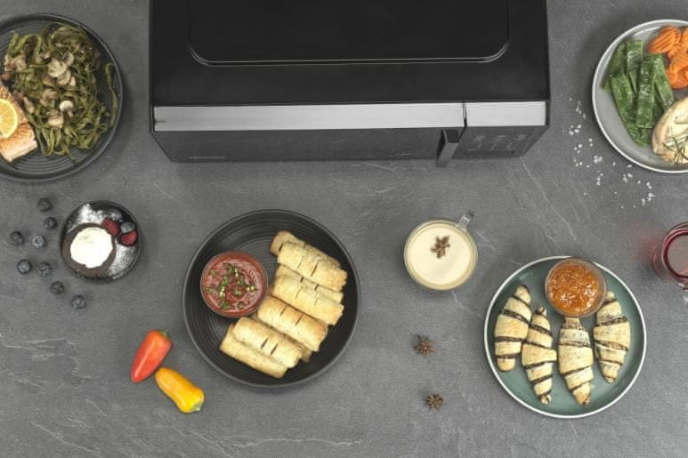 Ako ste zaboravili izvaditi hranu iz zamrzivača, ne morate se brinuti da ćete izgubiti dragocjeno vrijeme. Funkcija odmrzavanja omogućuje ravnomjerno ravnomjerno uz nižu snagu od uobičajene, tako da se posuđe odmrzava ravnomjerno i učinkovito.