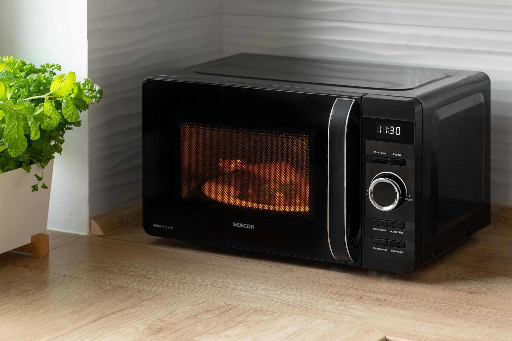 Samostojeća mikrovalna pećnica, u crnoj verziji, ukupnog kapaciteta 17 l, LED ploča s 8 lako odaberivim programima i upravljačkim gumbom. SENCOR SMW 5117BK nudi 5 razina snage mikrovalova i brzu i higijensku funkciju odmrzavanja.