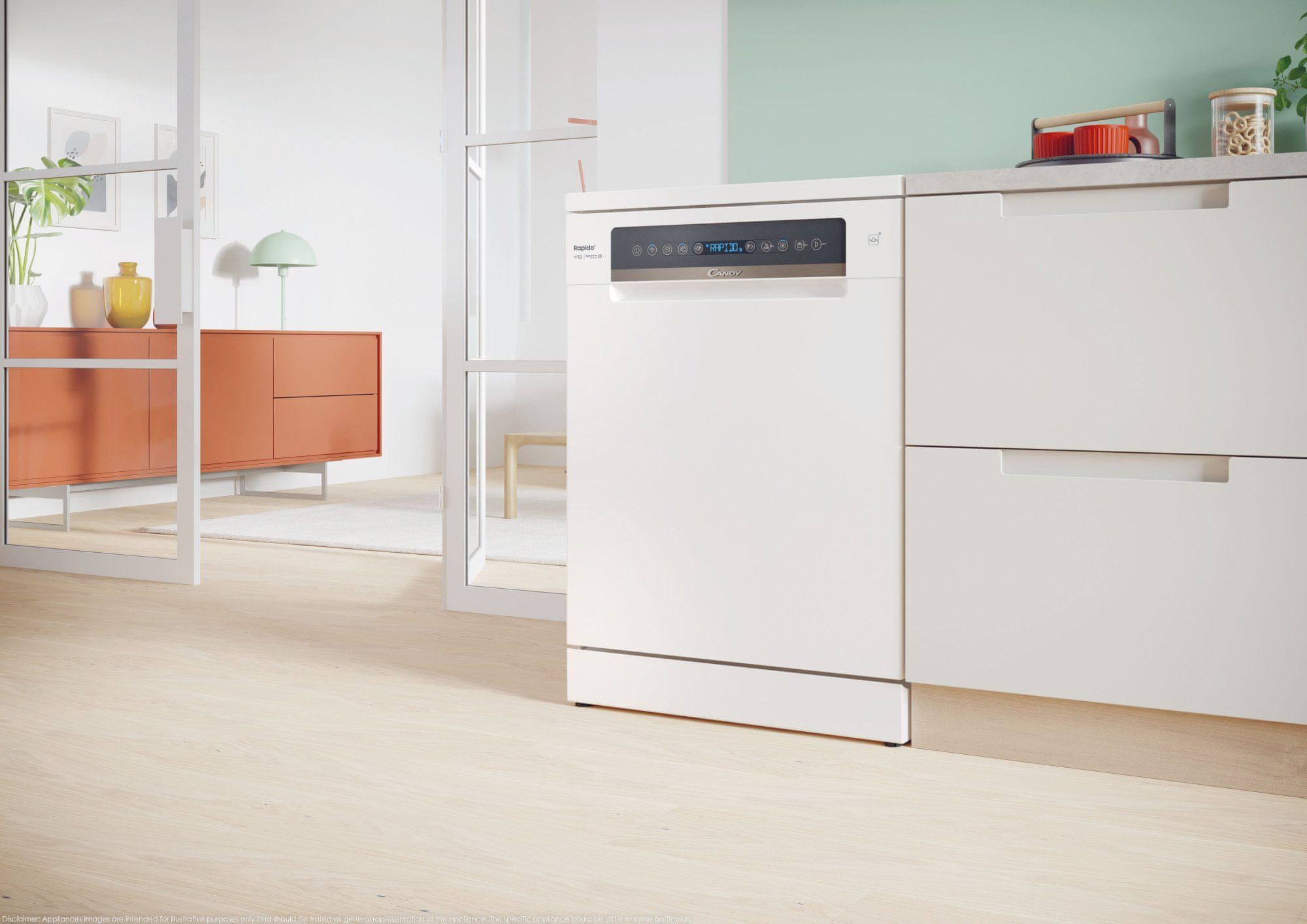 Samostojeća perilica posuđa Candy Rapidò CF 6B2S3PSW s kapacitetom pranja 16 podmetača svrstava se u B energetski razred i radi uz razinu buke od 42 dB. Ima 10 različitih programa pranja, a uz najvišu temperaturu pranja 75 °C osigurava savršenu higijenu za cijelu obitelj.