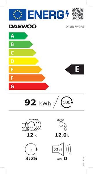 Daewoo DA1E6FW7RS samostojeća perilica posuđa pripada E klasi energetske učinkovitosti. Prostrana unutrašnjost omogućuje istovremeno pranje 15 podmetača. Može se pohvaliti zaštitom od prelijevanja i curenja te 6 programa (uključujući brzi program i poseban program za tvrdokornu prljavštinu) i 4 postavke temperature pranja. Omogućuje kontrolu putem WiFi veze pomoću mobilne aplikacije Vezzy. Gornja košara podesiva po visini i preklopne police u donjoj košari omogućuju vam da prilagodite prostor prema veličini i količini posuđa koje namjeravate prati.