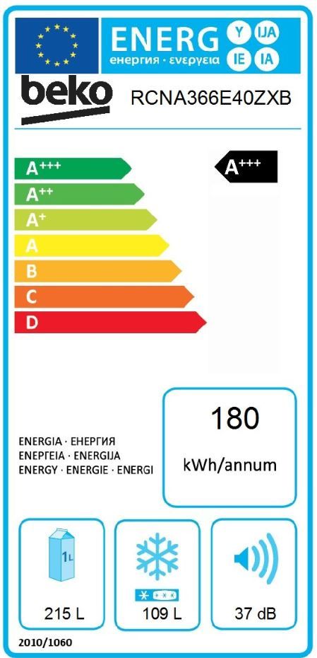 Beko kombinirani hladnjak RCNA366E40ZXB ima iznimnu prostranost i performanse. U prostoru za hlađenje ima 215 litara volumena, za pohranjivanje hrane su vam na izbor 3 staklene police i 1 ladica za voće i povrće. Na izbor vam je ladica za produljivanje svježine, nosač za staklenke i površina za odlaganje na vratima hladnjaka.