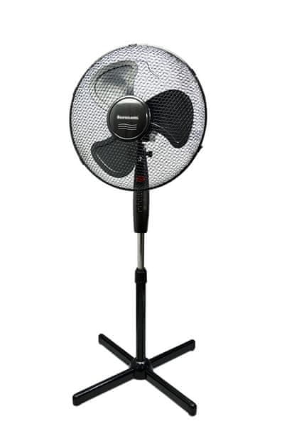 Stojeći ventilator s promjerom lopatica \<b\>40 cm\</b\> osigurava ugodno osvježenje u vrućim danima. Nudi \<b\>3 brzine\</b\> puhanja (visoka, srednja, niska) koje jednostavno prilagodite svojim potrebama. Odlikuje ga \<b\>tihi rad\</b\>, stoga je prikladan i za uporabu u uredima ili spavaćim sobama, a da vas pritom ne ometa.