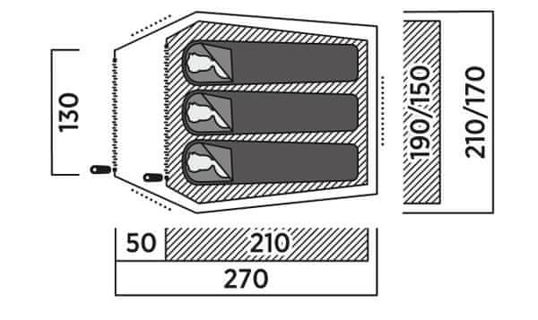 | Dimenzije prostora za spavanje | 190/150 × 210 × 80–110 cm |