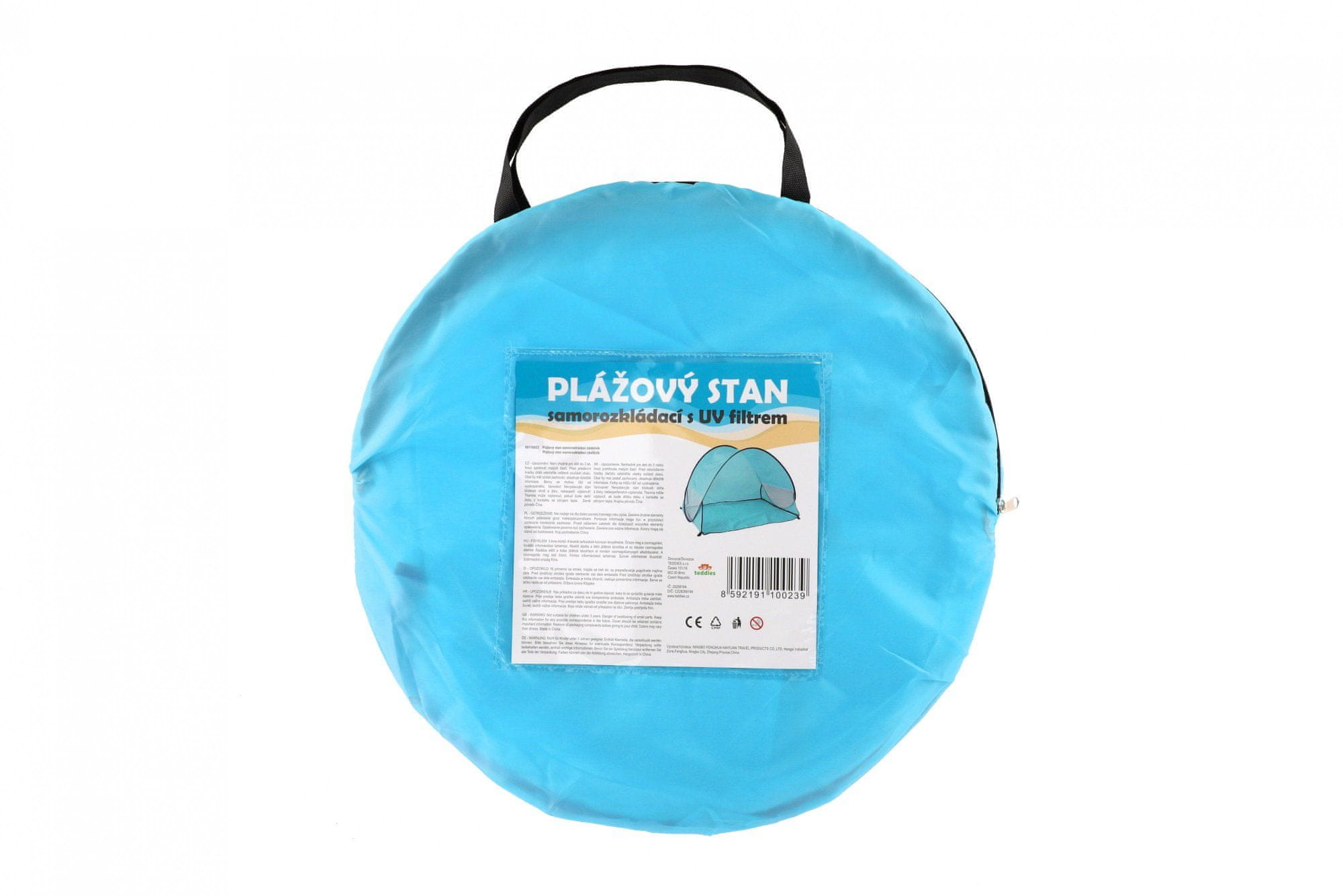 Teddies šator za plažu, s UV filterom, 100 × 70 × 80 cm, sklopivi, poliester/metal, ovalni, plavi, u platnenoj torbi