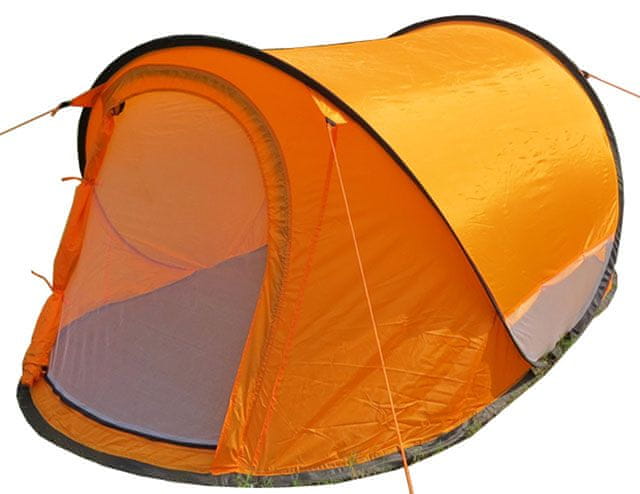 SAMOPOSTAVLJIVI ŠATOR za 3 osobe. Ovo je vrlo kompaktan i jednostavan šator za postavljanje. Unaprijed postavljeni štapovi od stakloplastike potpuno će postaviti šator nakon što ga izvadite iz pakiranja. Zatim sve što trebate učiniti je pričvrstiti šator na tlo klinovima i pričvrstiti kupolu šatora sidrenim užadima sa svih strana.