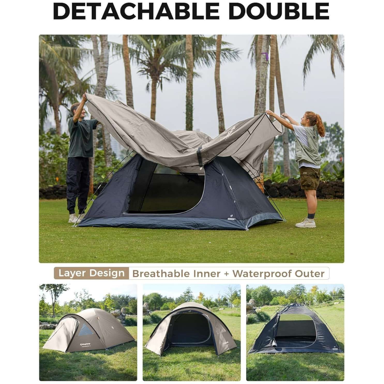 Šator ima dvoslojnu konstrukciju, koja pomaže smanjiti kondenzaciju i poboljšava udobnost tijekom spavanja. Vanjski sloj izrađen je od 210T poliestera s PU3000 mm vodootpornom zaštitom, dok je podnica od PE materijala s istom vodootpornošću, što ga čini pouzdanim izborom za redovitu 3-sezonsku upotrebu.