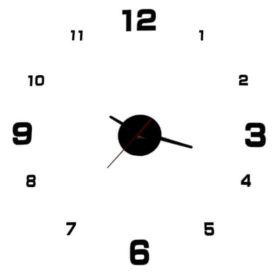 O veličini sata odlučuje VAŠ promjer od 70 cm do 130 cm. Jednostavna montaža na zid zahvaljujući samoljepljivim elementima. Satovi su namijenjeni za montažu na glatke zidove. Sat je napajan štapnom baterijom – nije uključena u pakiranje.
