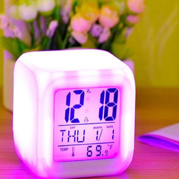 Ova svjetleća budilica/svjetiljka je za vas. ✨ Ovaj mali budilnik svijetli u mraku 🌙, mijenja boju 🌈, ima prikaz temperaturnog termometra 🌡️ i kalendara 📅.