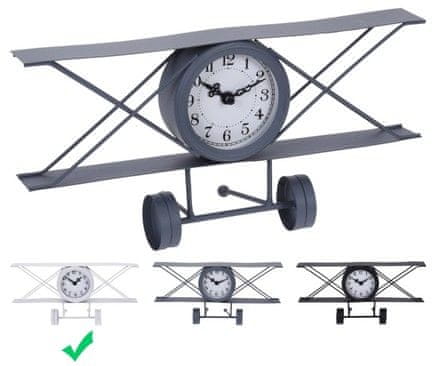 - stolni sat u metalnom dizajnu – lijep retro dizajn aviona – napaja se samo 1 AA baterijom (nije uključena) – dimenzije: 30 × 15 × 8 cm – boja: bijela konstrukcija / bijeli brojčanik Stoli.