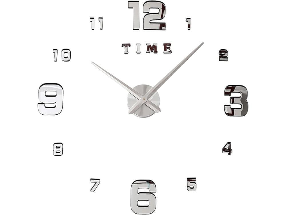 Verkgroup XXL 3D alu. moderno ogledalo zidni sat do 130 cm srebro na EVA pjeni