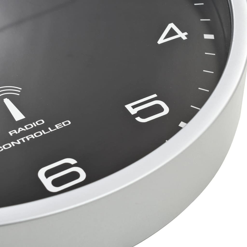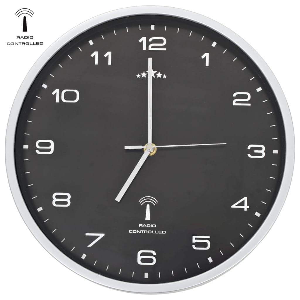 Vidaxl Radijski upravljan zidni sat s kvarcnim mehanizmom 31 cm crni