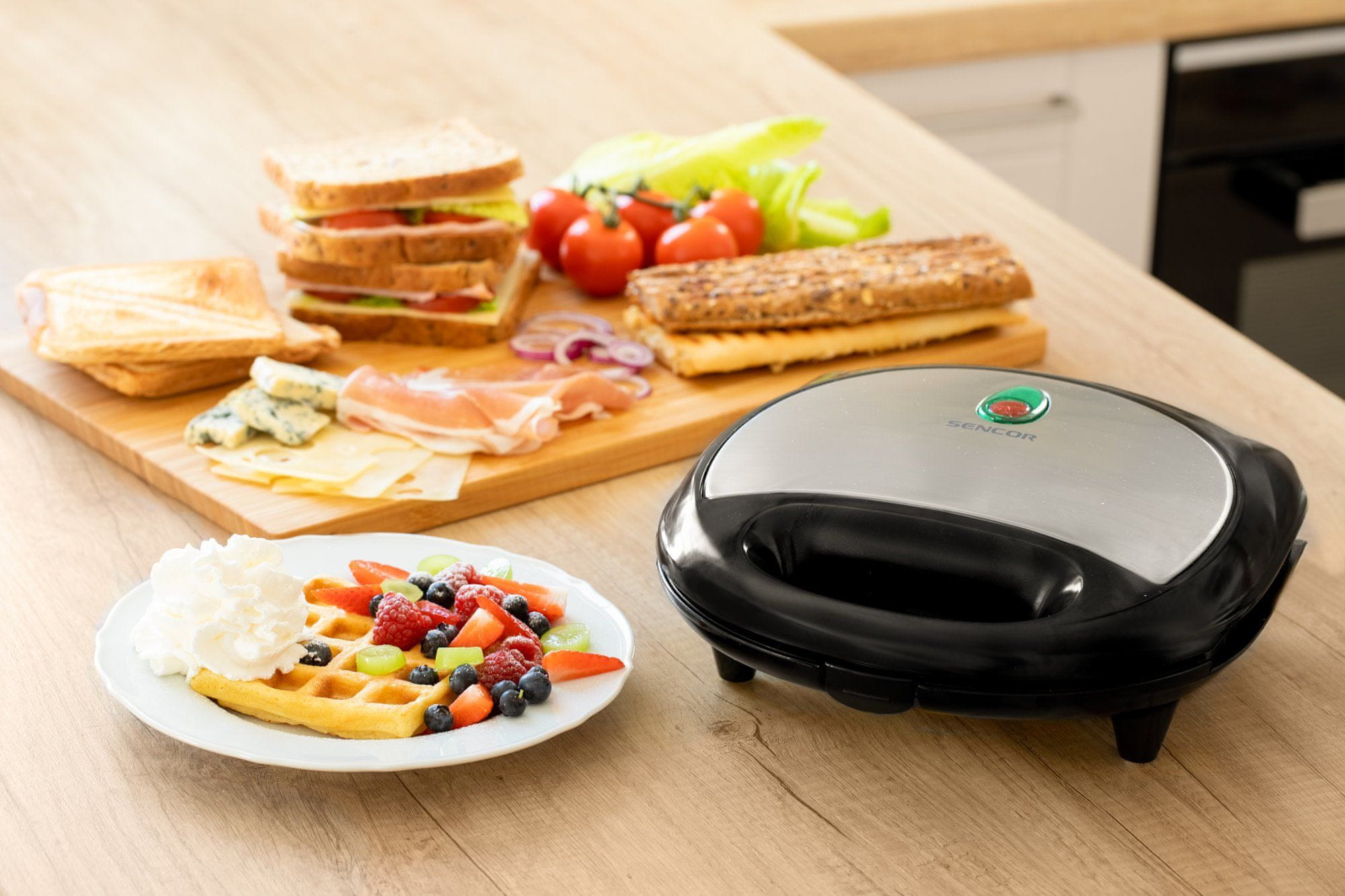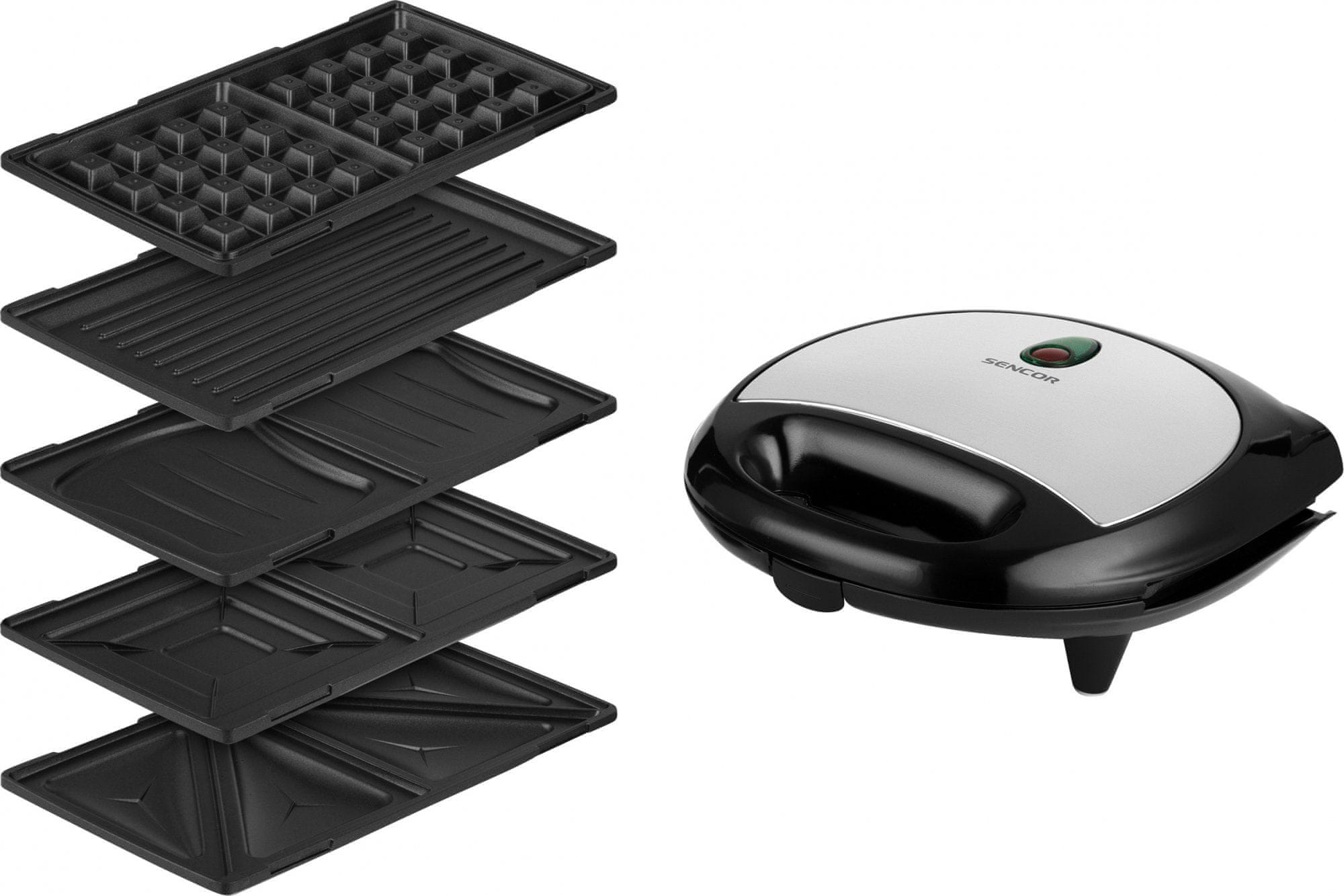 5 u 1 kuhinjski aparat za pripremu sendviča, pečenje mesa na roštilju ili pečenja vafla. SENCOR SSM 9510SS opremljen je sa 5 izmjenjive ploče s neljepljivom površinom. Uređaj ima toplinski izoliranu ručku i kućište, indikator rada i topline te sigurnosni toplinski osigurač.