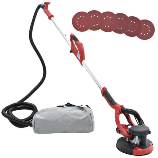 Ovaj stroj dizajniran je s funkcijom samo-usisavanja, koja smanjuje prašinu kako bi vaši radovi brušenja bili učinkovitiji. Ova brusilica za suhe zidove ima glavu koja se zakreće, što olakšava dosezanje gotovo svakog kuta i ugla. Ugrađena glava s četkom spriječit će grebanje. Možete prilagoditi brzinu između 800 i 1750 o/min kako biste zadovoljili svoje potrebe. Brusilica ima izdržljiv i lagani okvir, a ručka je ergonomski dizajnirana za udobnije držanje. Brusilica za suhe zidove uključuje fleksibilno crijevo za izvlačenje prašine koje se proteže do 4 metra, kako bi pouzdano sakupljalo prašinu koja se stvara i čuvalo radno područje čistim.
