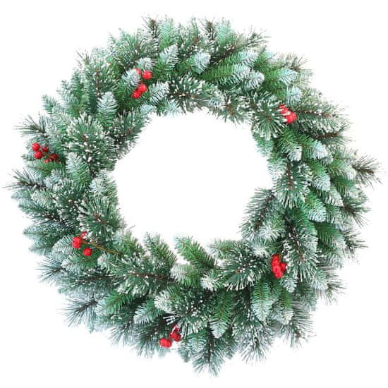 Denis Božićni vijenac za vrata, zeleni, snijeg, bobice, 40 cm