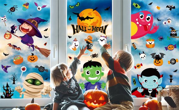 HOME & MARKER® Naljepnice za prozore, Halloween dekoracija, DIY ukrasi, bundeva, duhovi, šišmiši, višekratne PVC naljepnice | SPOOKCLINGS Crtić