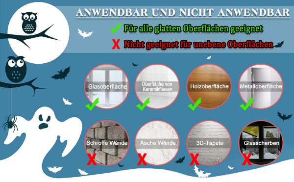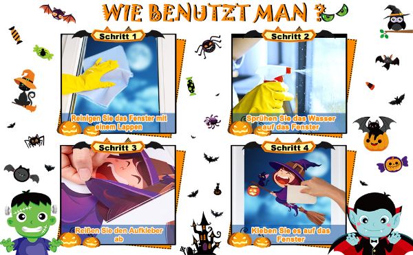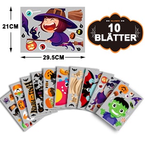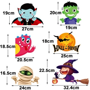 - Veličina: Naljepnice za prozore za Noć vještica, sastoje se od 10 naljepnica, svaka 21 × 29,5 cm