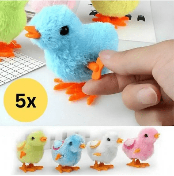 5 CHIKLET igračaka pilića na navijanje koji skakuću (u nasumičnim bojama)