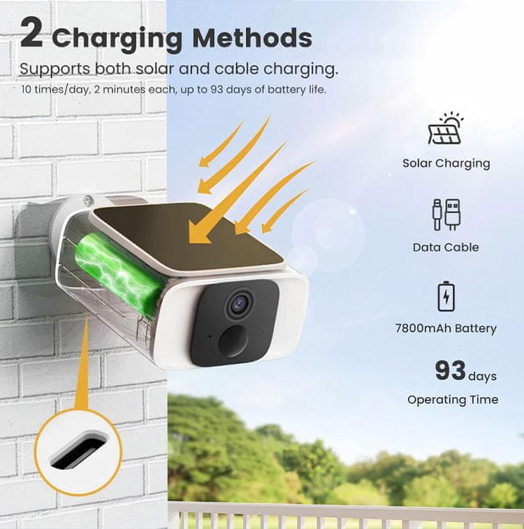 • Dobijte kontinuirani pregled onoga što se događa oko vašeg doma bez potrebe za utičnicom