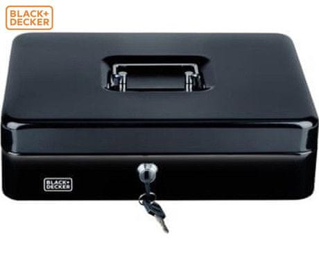 Black+Decker blagajna/sef za novac s bravom, 4 ladice, ladica za kovanice, 2 ključa, čelik, 30x24x9 cm, crna