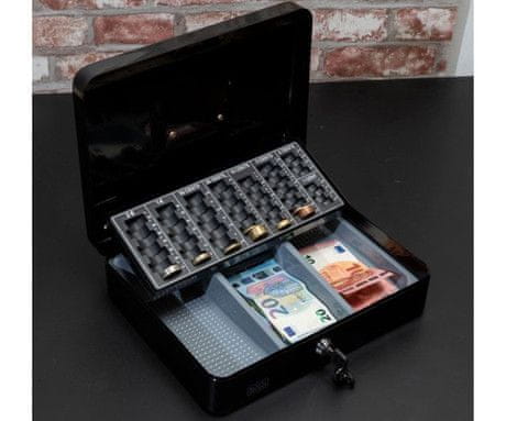 Zahvaljujući svom elegantnom crnom metalnom dizajnu, ova blagajna se uklapa u svaki interijer, bilo kod kuće, u uredu ili u trgovini.